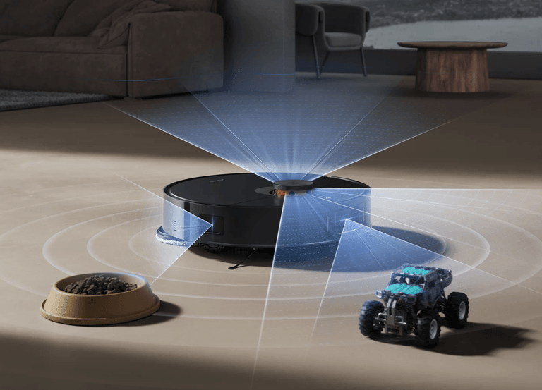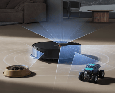 O sistema a laser cria rotas eficientes, evita colisões e permite configurar zonas de limpeza no aplicativo.